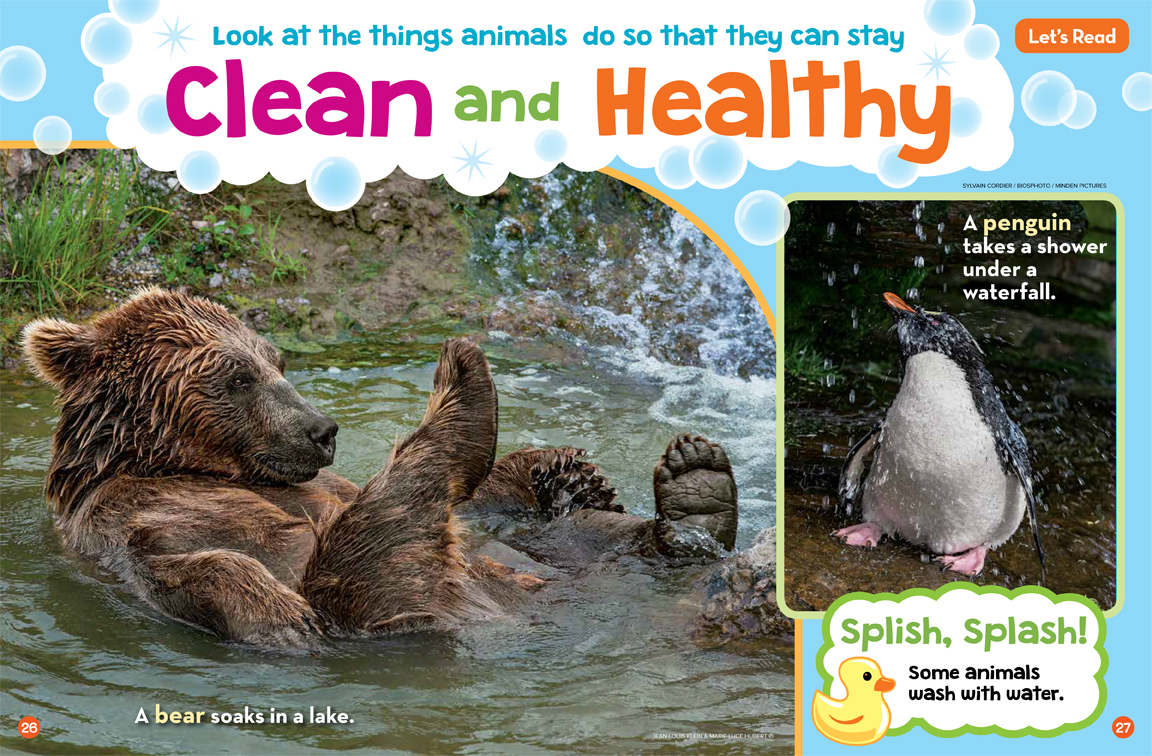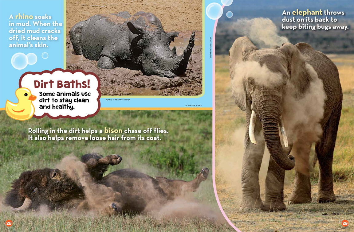 Look at the things animals do so that they can stay clean and healthy.